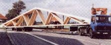 Wie in dem nebenstehendem Beispiel konnten wir den Transport des Binders von 22 m nach Erteilung einer Sondergenehmigung durchführen.